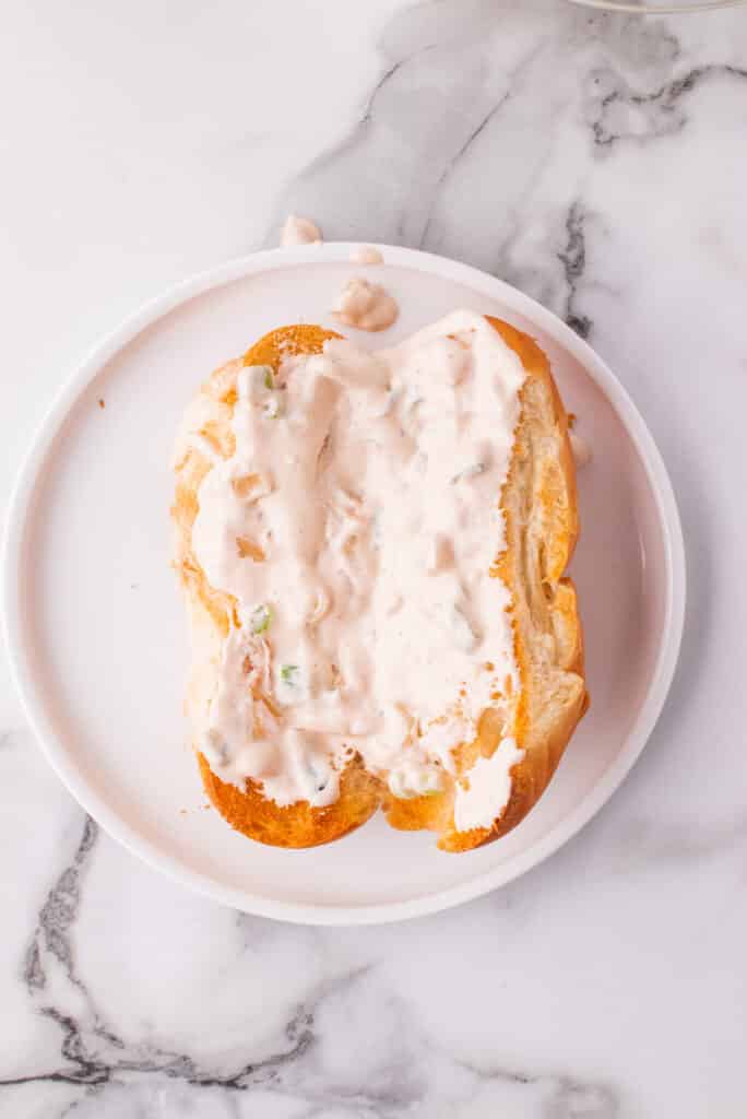 - Brush a hearty dollop on onion spread on either side of the roll.